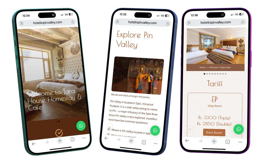 Our work didn’t stop at the website. We handled everything from domain and hosting to on-page SEO, ensuring Tara Homestay ranks right on top for key searches related to accommodation in Pin Valley.
