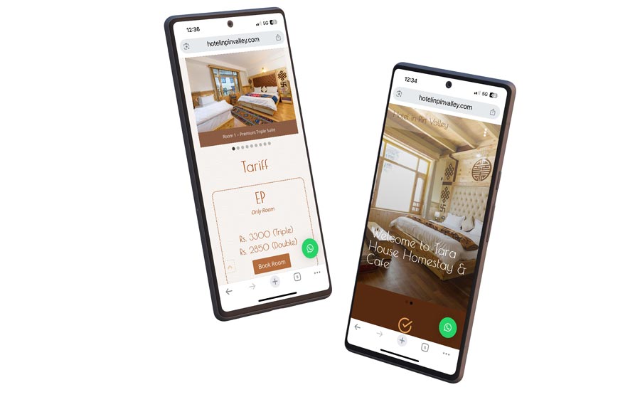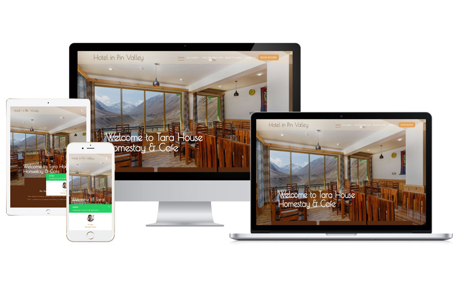 Website reflecting the luxurious new rooms, cafe and spaces at Tara Homestay – the first of its kind in Pin Valley.